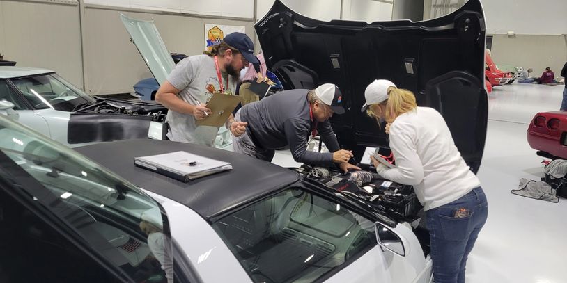 One of the highlights of a judging meet is actually judging of Corvettes! This is a great opportunity for a Corvette owner to learn more about their car and for judges to study and learn from original Corvettes. At the end of the meet, the owner will have a thorough evaluation of their Corvette and an 18 page judging report of their car that they can use to better the car for future judging meets at higher levels.